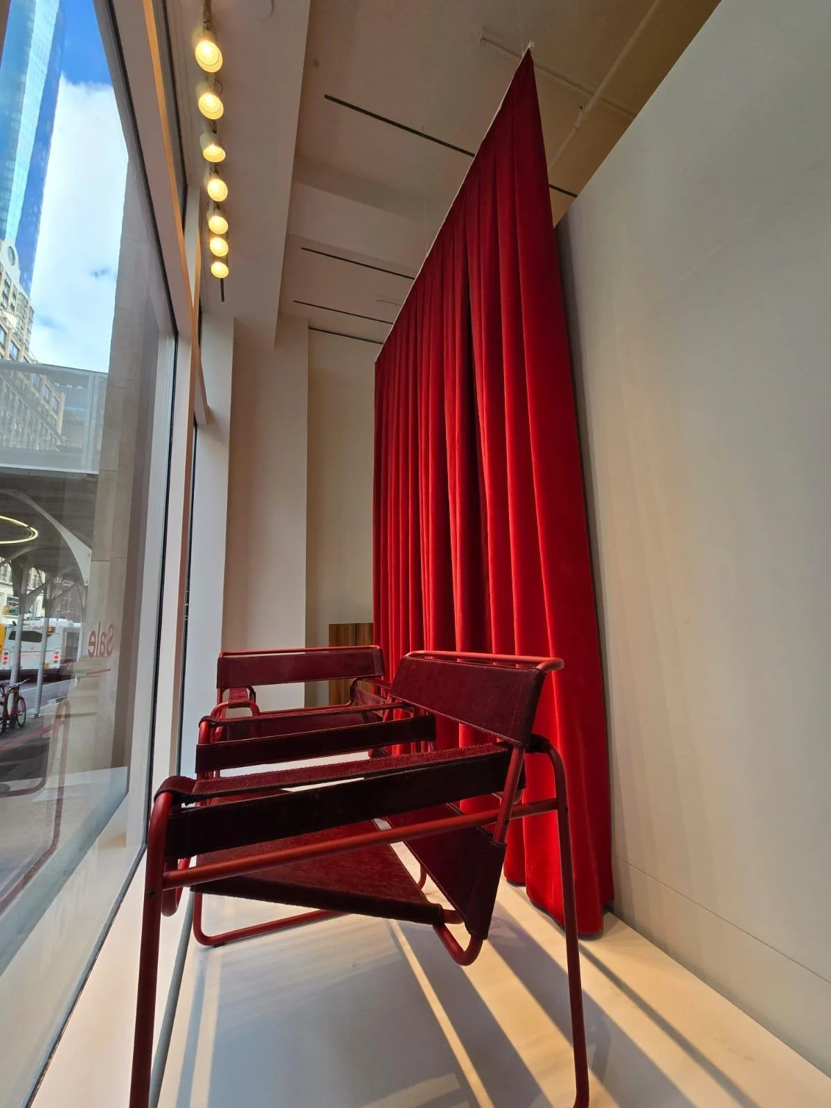 This wasn’t the first time Design Within Reach turned to us for a visual merchandising solution. For the Knoll store on Park Avenue South last year, we made an inverted pleat curtain that perfectly framed the stunning red Wassily chairs on display. A few months later, we swapped it for a cheery yellow S-fold—this time showcasing the chairs in black.